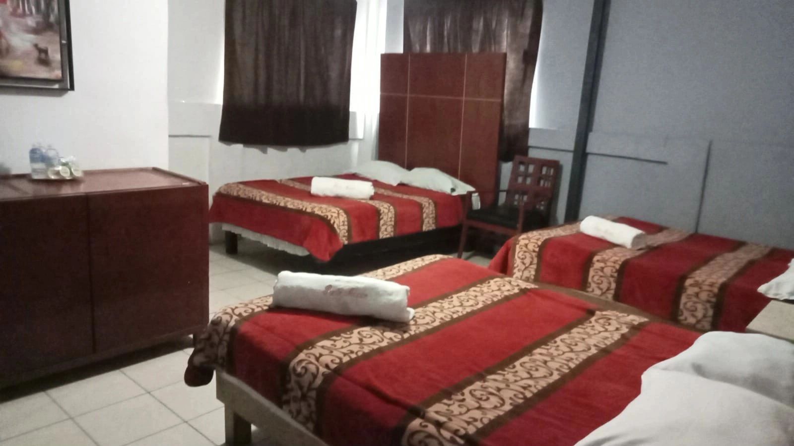 Habitación con 3 camas matrimoniales para 3 a 6 personas máximo